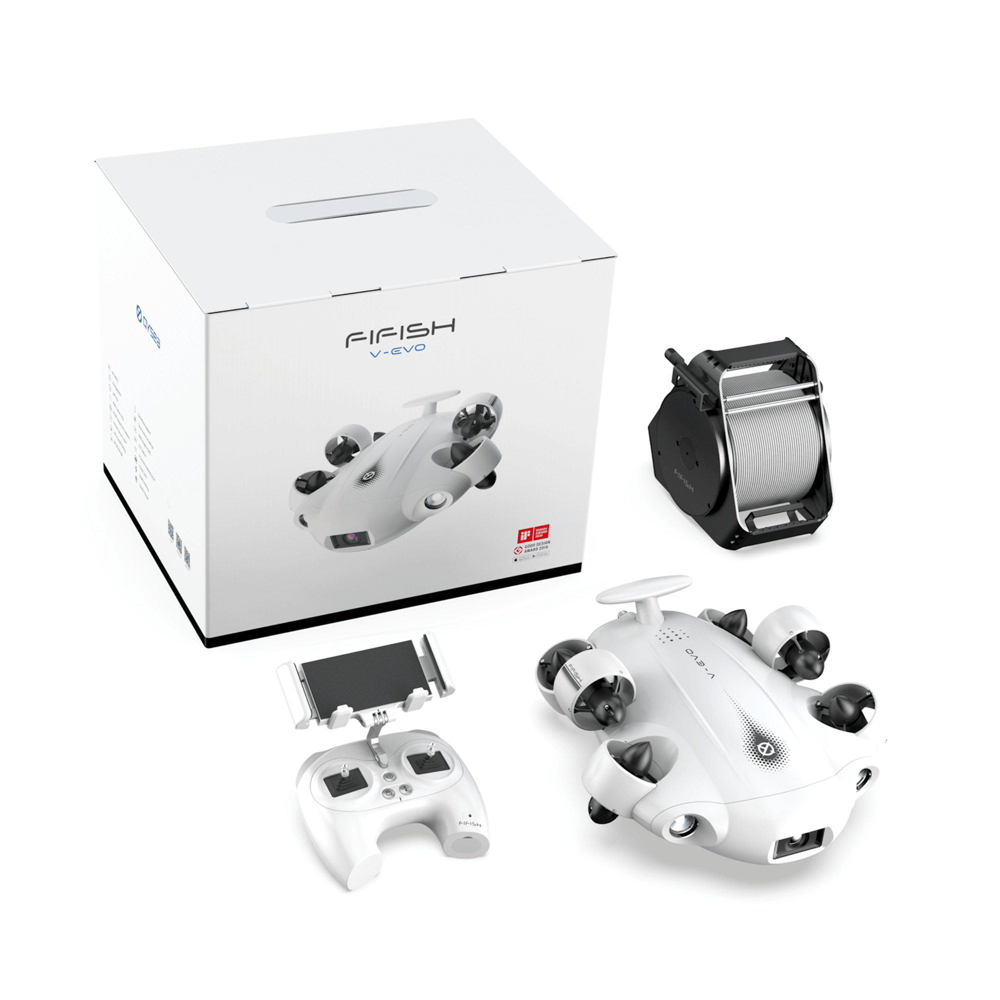 With a 100-meter depth rating, optional robotic arm compatibility, and portable tether-based control system, the FIFISH V-EVO is ideal for marine inspection, aquaculture operations, underwater search tasks, recreational exploration, training missions, and content production workflows that demand mobility, reliability, and professional imaging performance in a compact platform.